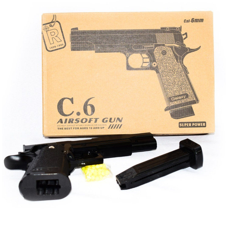 کلت فلزی و تفنگ ساچمه ایکلت های فلزی ایرسافت گان بهترین و شبیه ترین کلت های اسباب بازی به نمونه واقعی کلت هستند . کلت های فلزی ایرسافت گان بجز خشاب ها و قاب روی دسته کلت ، تمام فلزی هستند که این امر باعث سنگینی و شباهت خیلی زیاد این کلت ها به نمونه واقعی میشود. مدل c6 یکی از مدل های قدرتمند این کلت ها است .