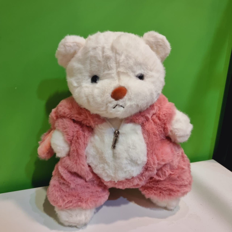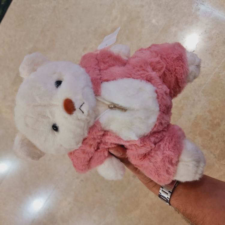 عروسک خرس لباس کیتی سوییشرت زیپی یک عروسک سوپرایزی دو حالته است کا قابلیت در آوردن لباسش وجود داره و تبدیل به یک خرس بانمک بدون لباس میشه