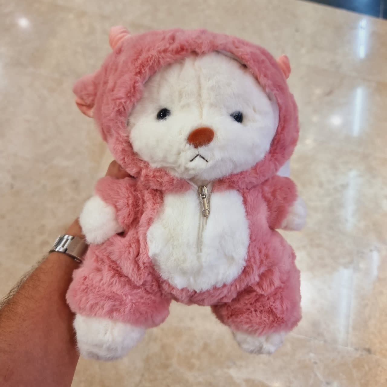 عروسک خرس لباس کیتی سوییشرت زیپی یک عروسک سوپرایزی دو حالته است کا قابلیت در آوردن لباسش وجود داره و تبدیل به یک خرس بانمک بدون لباس میشه